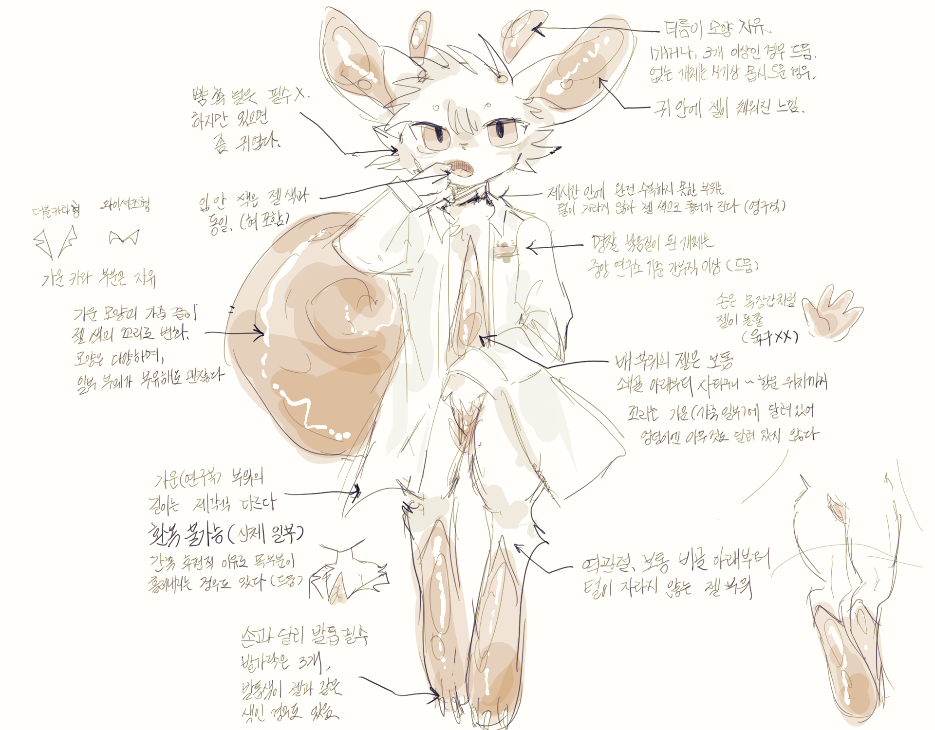 보통의 케모노처럼 머리털의 영역으로 남은 연구원도 있고, 인간처럼 다양한 헤어스타일을 가진 연구원도 있습니다.