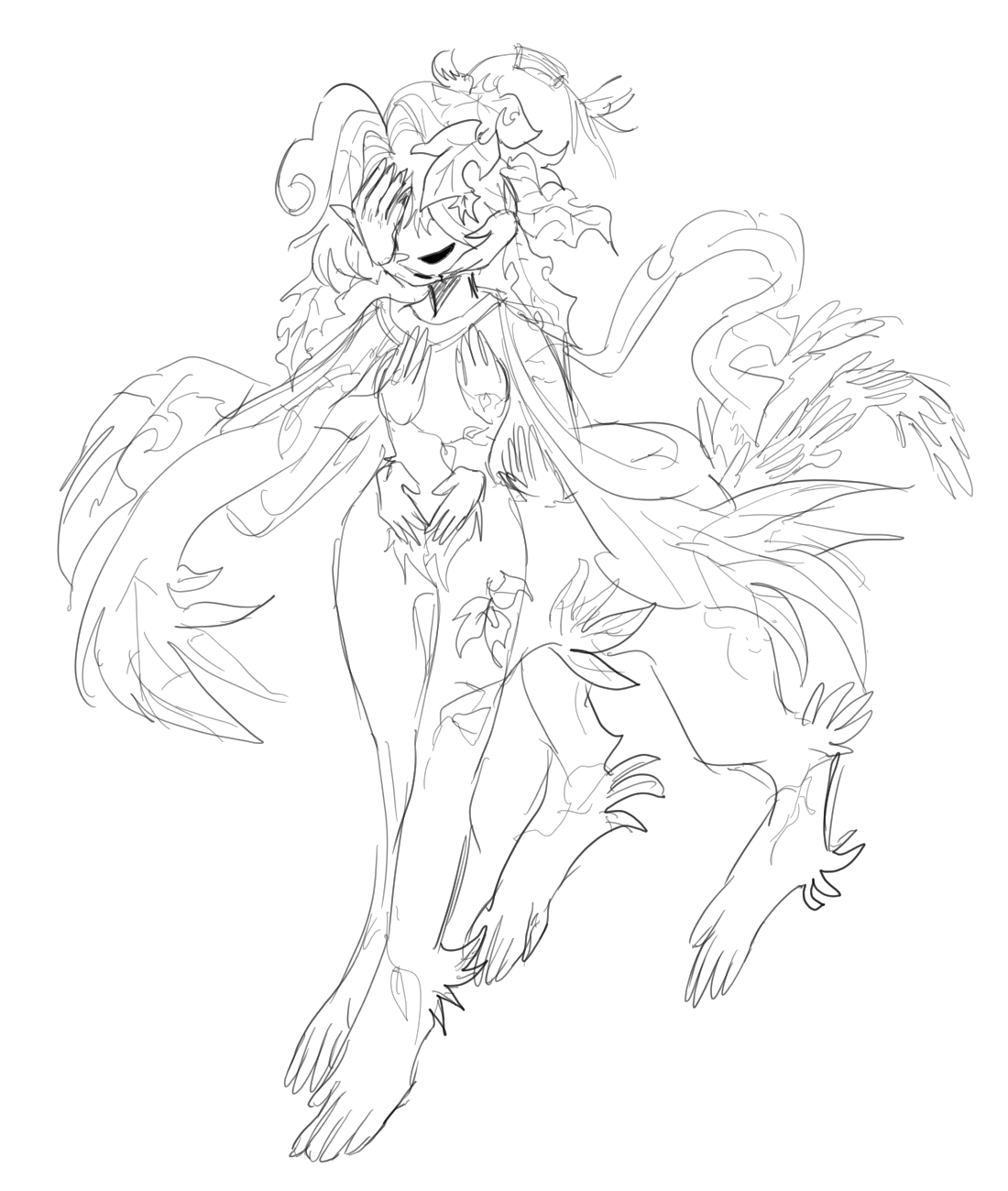 머리 손 - 있음 / 얼굴 손 - 평범함 / 몸통 손 - 날개뼈 / 꼬리 손 - 모은 손