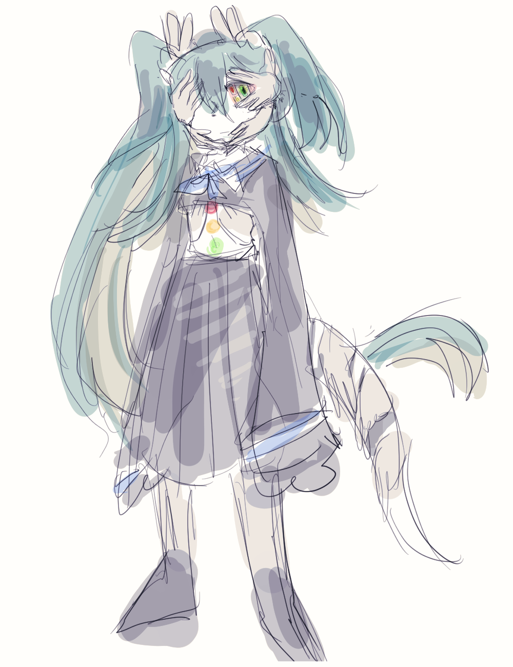 머리 손 - 없음 / 얼굴 손 - 평범함 / 몸통 손 - 가슴팍 / 꼬리 손 - 펼친 손 + 쥔 손